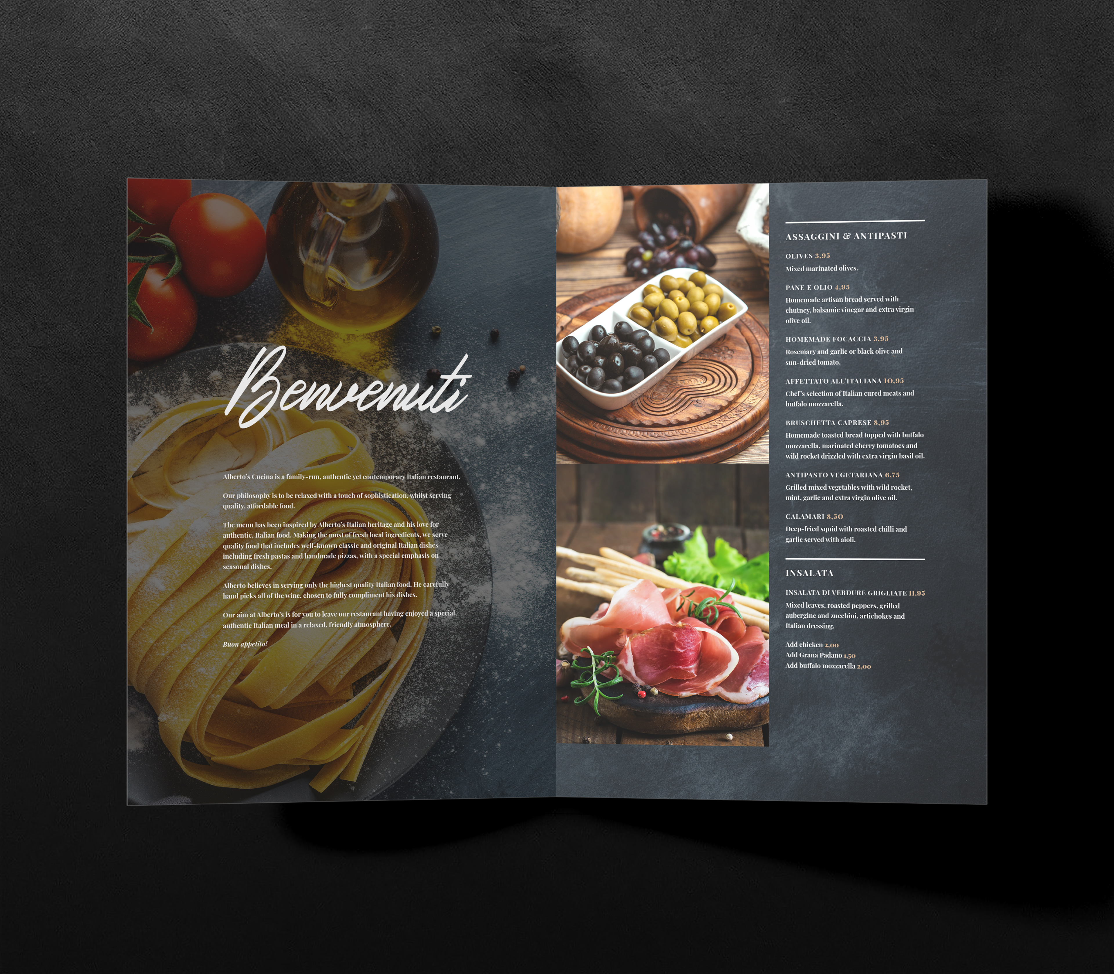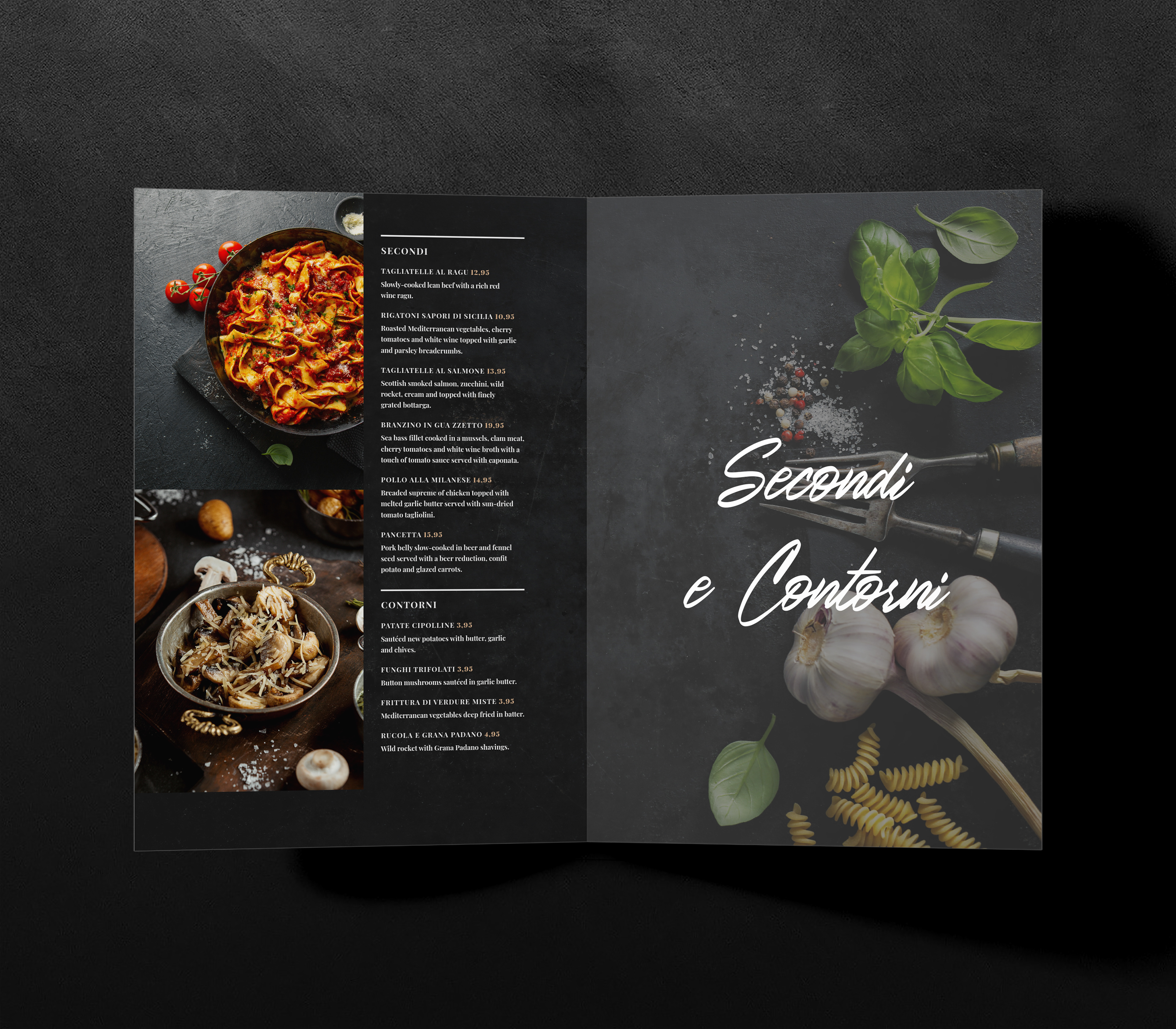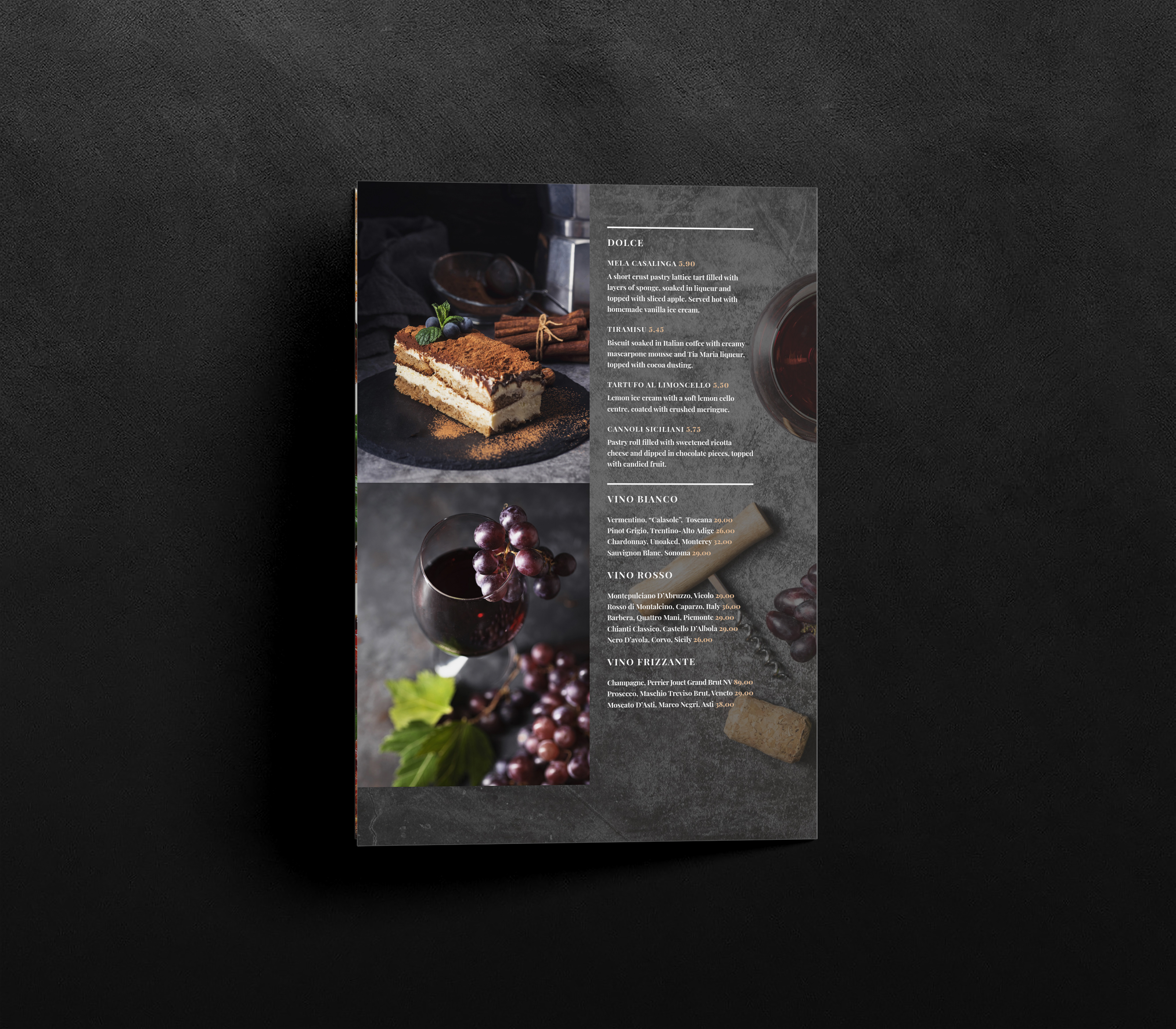 Italian restaurant menu concept and redesign.