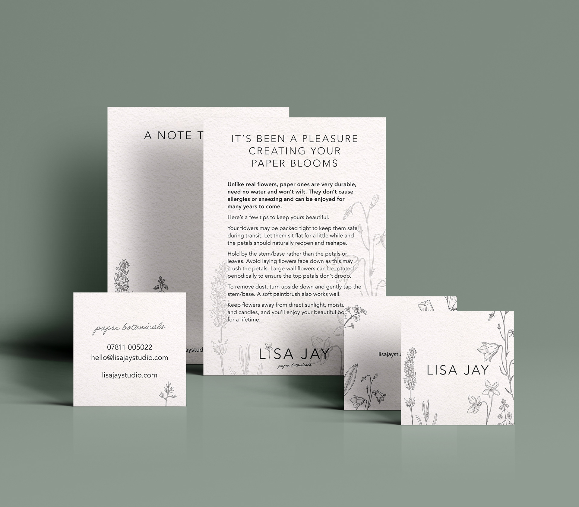Web design and logo concept / marketing design. Business stationery featuring illustrated botanicals and hand-rendered type.